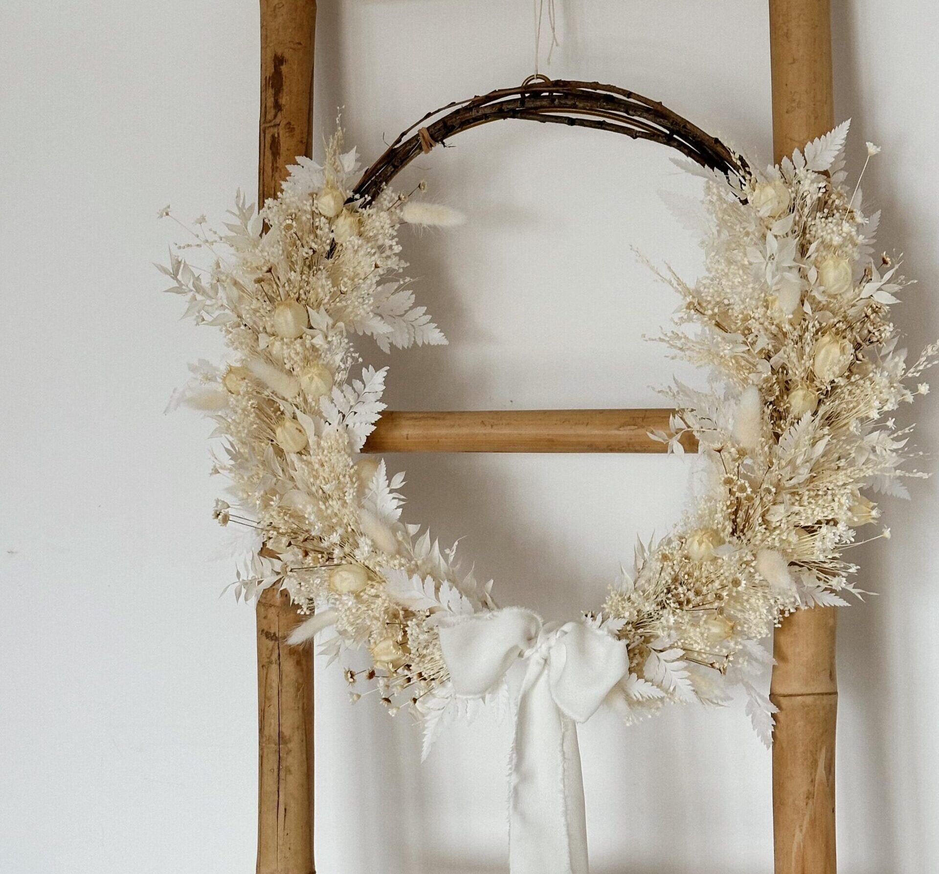 White Serenity – Coroniță decorativă din flori uscate